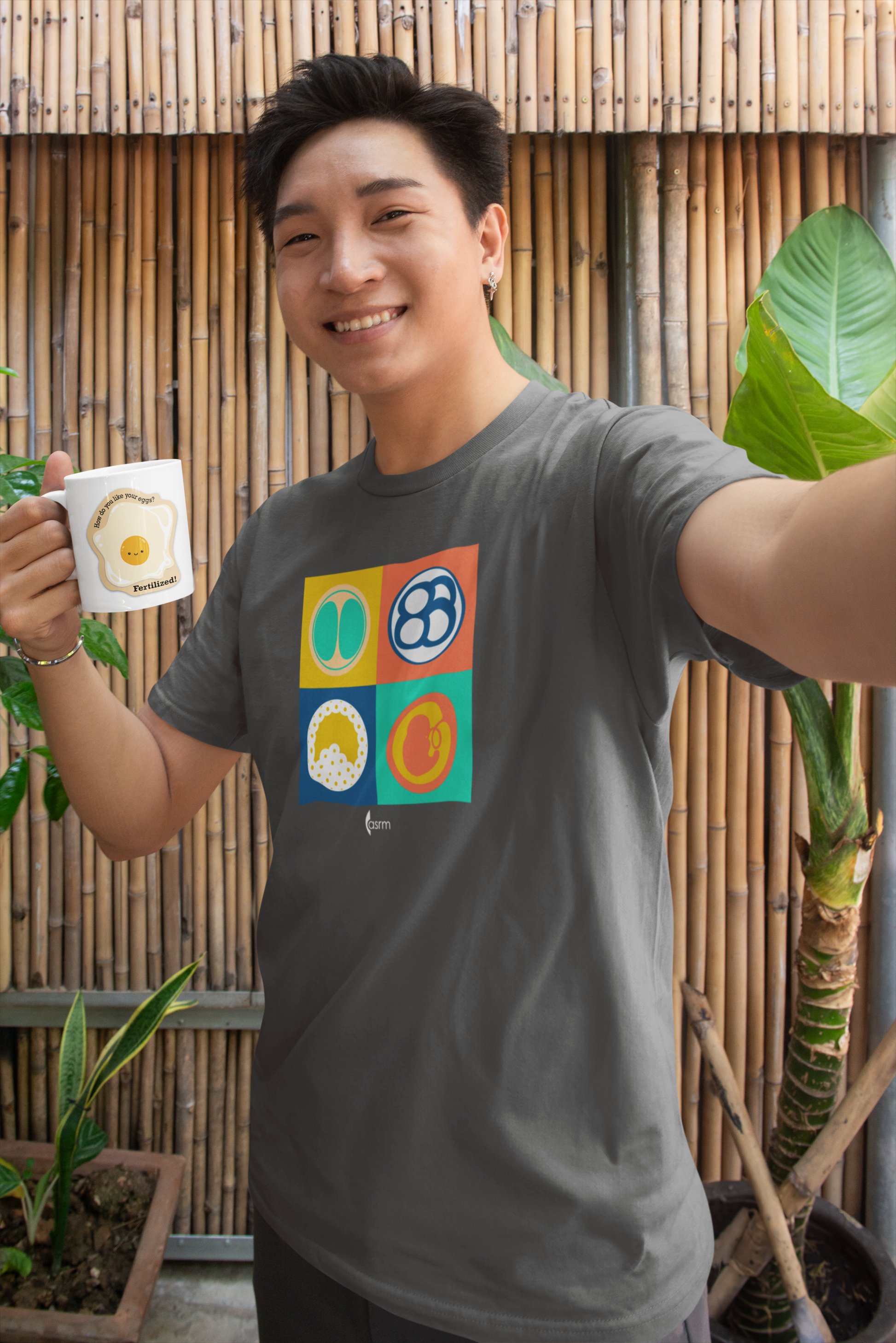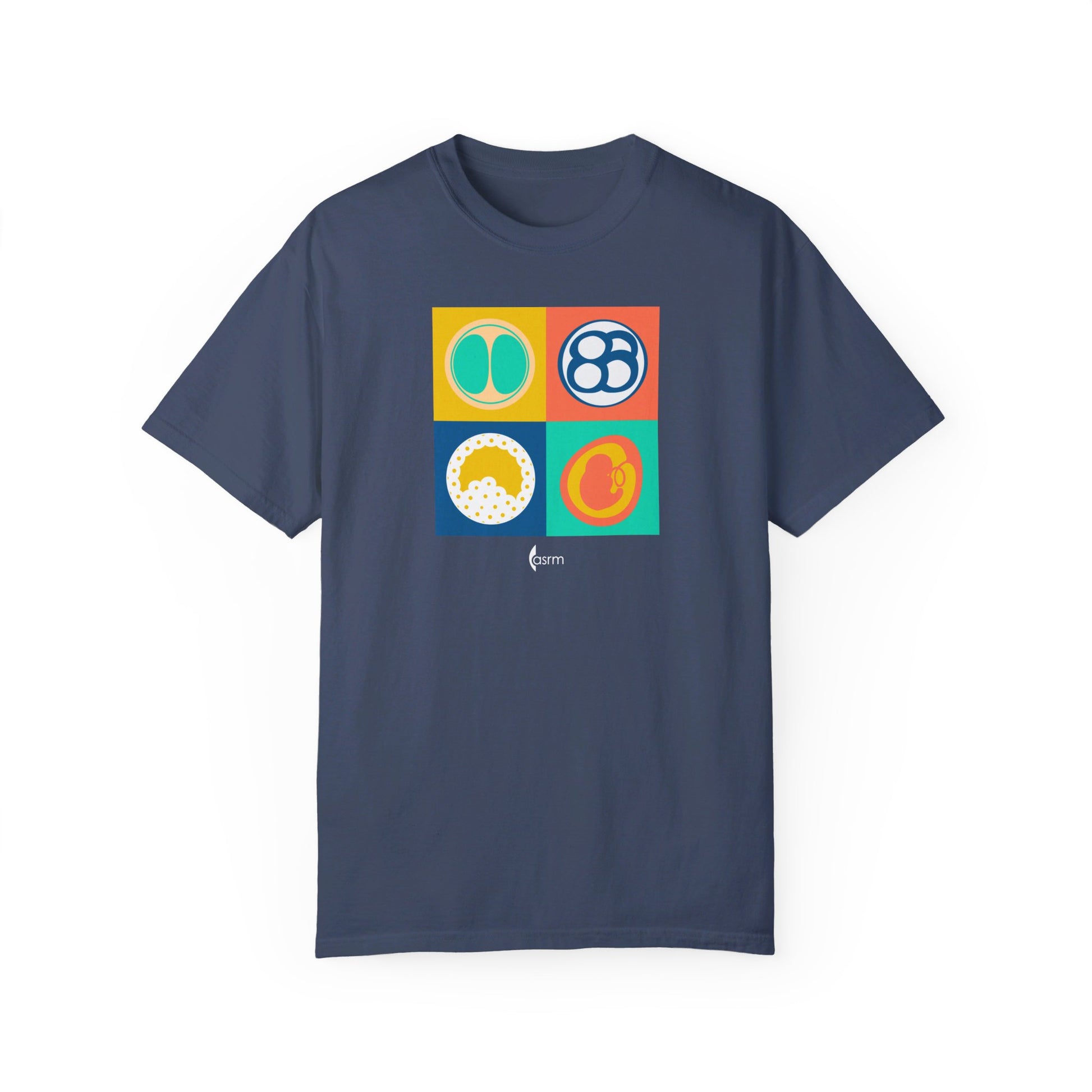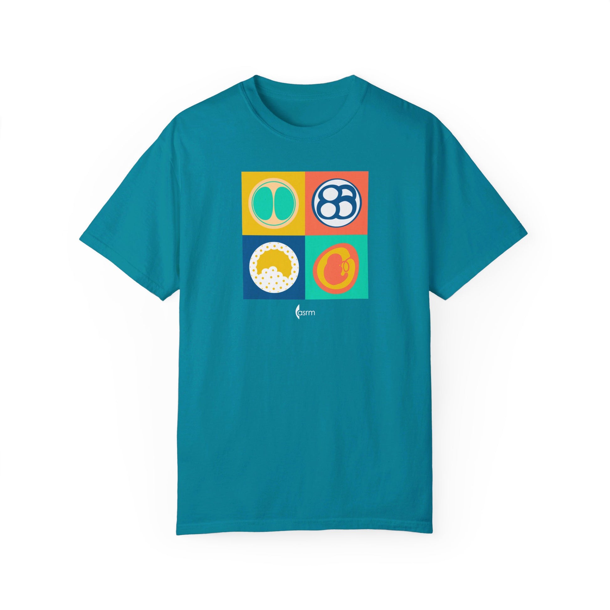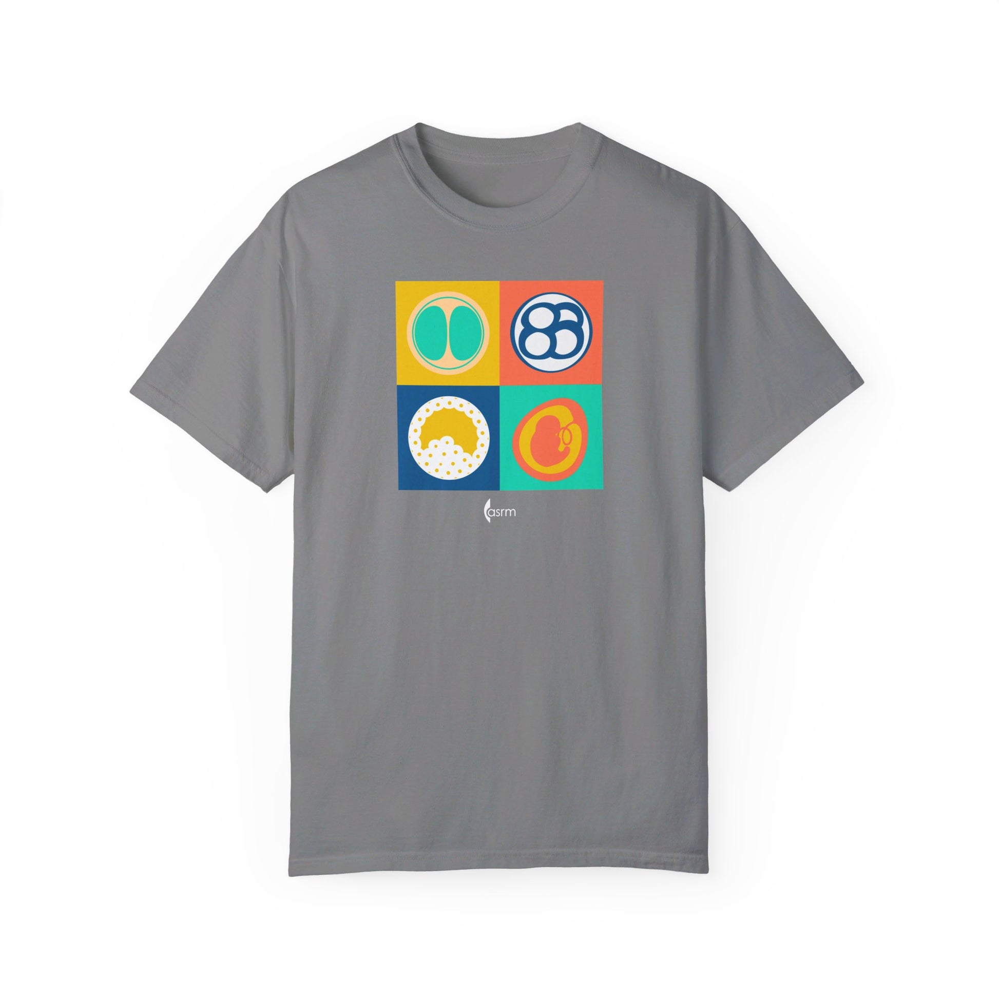 Celebrate embryology in style with this retro design featuring various stages of embryo development. Printed on a Comfort Colors t-shirt, this awesome foursome was born to adorn your wardrobe with a pop of color!