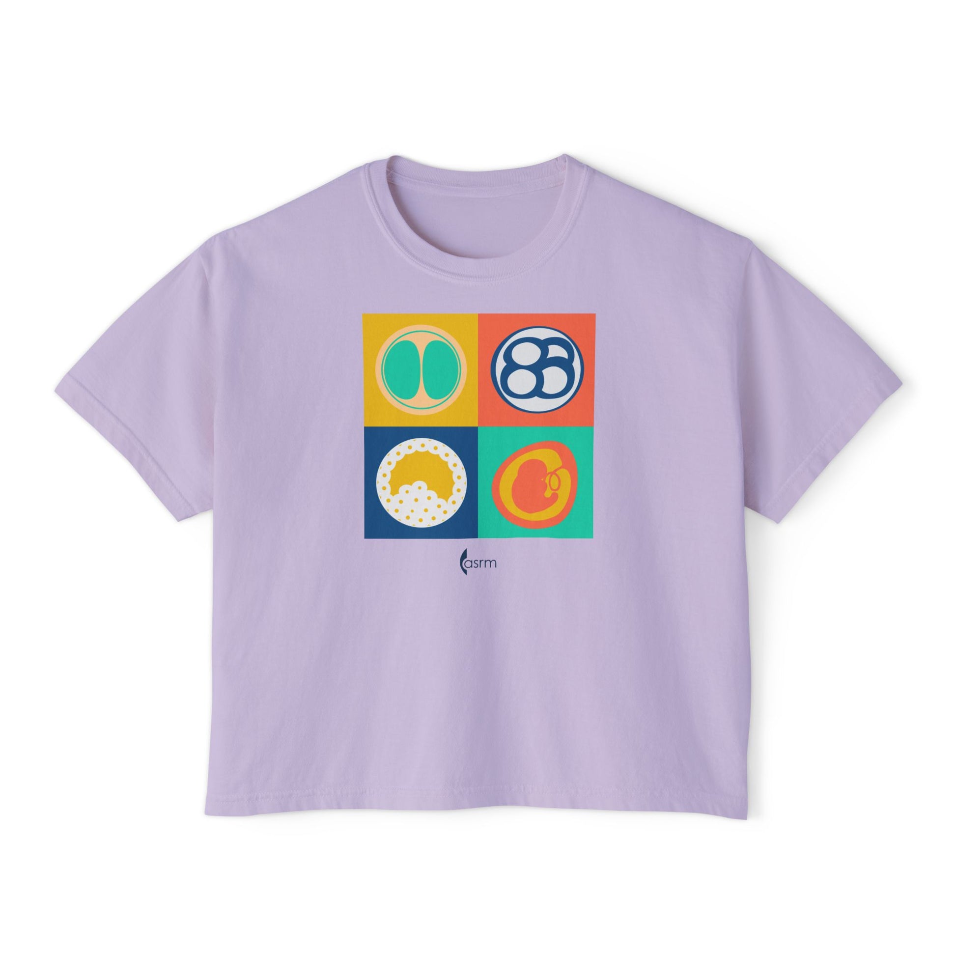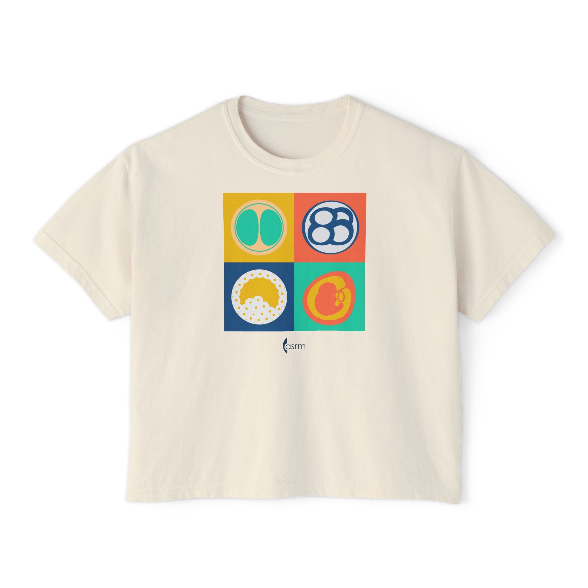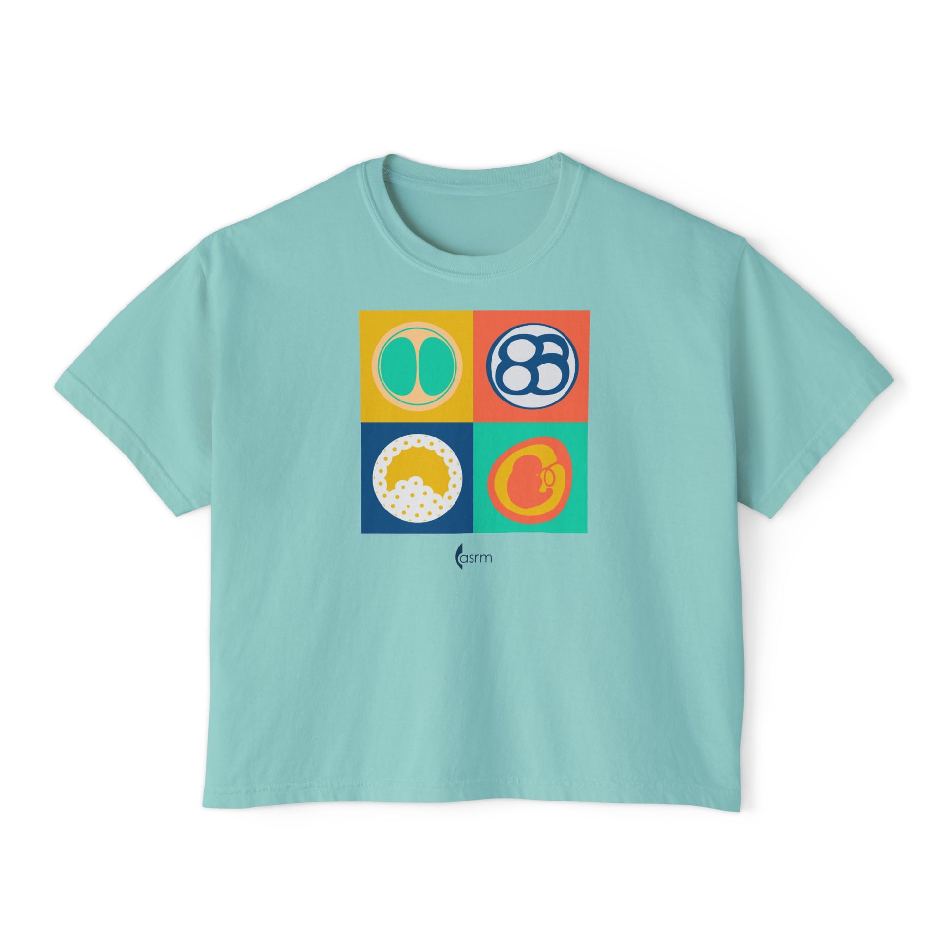 Celebrate embryology in style with this retro design featuring various stages of embryo development. Printed on a Comfort Colors women’s boxy t-shirt, this awesome foursome was born to adorn your wardrobe with a pop of color!